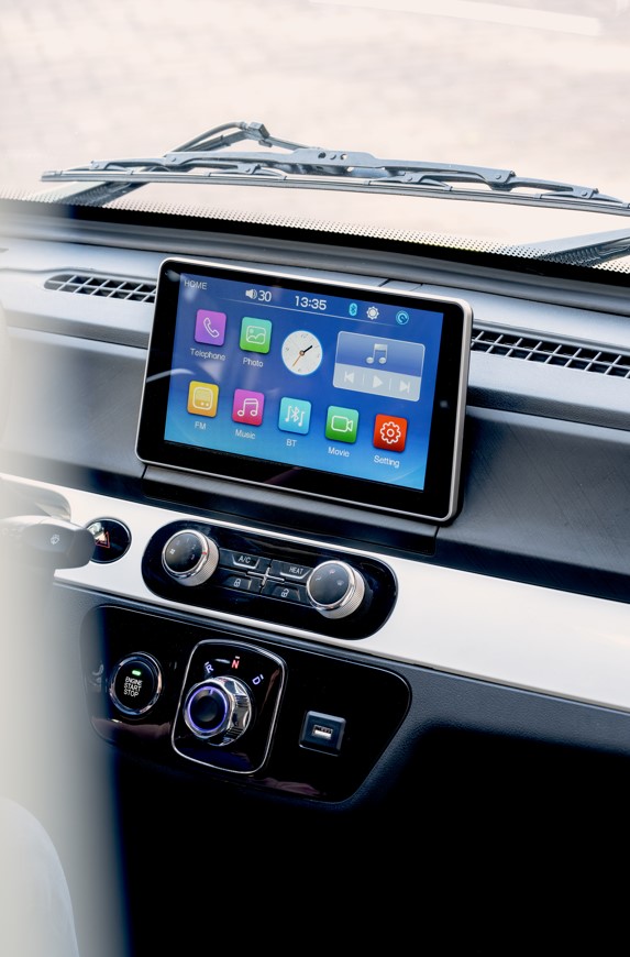 Unter realistischen Bedingungen hat er eine Reichweite von 200 km. Zudem ist er ein Plattformwagen zum Tragen bis 600 kg auf der Ladefläche oder 500 kg bei einer Ladebox. Er kommt serienmäßig mit LiFePo-Batterie, Klimaanlage, Zentralverriegelung und Multimedia Display.